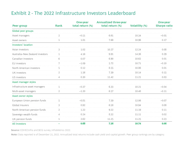Specifically, the BCG–EDHECinfra study of the risk-adjusted returns that infrastructure investors generated found that in 2022:
