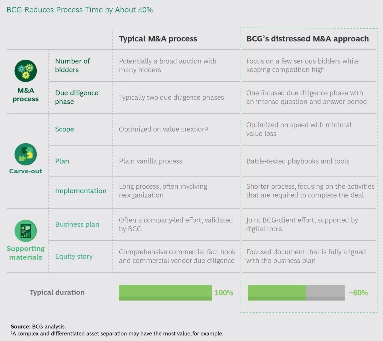 BCG’s proven approach has helped numerous companies navigate distressed M&A deals, including complex carve-outs, by taking three actions.