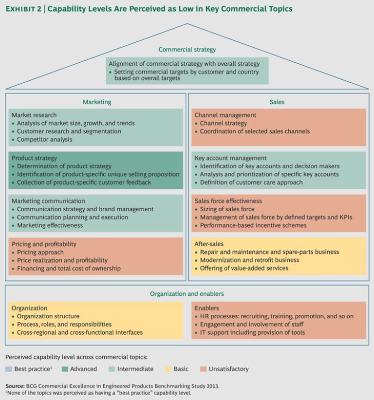 The answers to questions like these, in the context of the company’s industry and business requirements, will point to the most valuable improvement areas as the company seeks to develop and implement a world-class approach for achieving commercial excellence.
