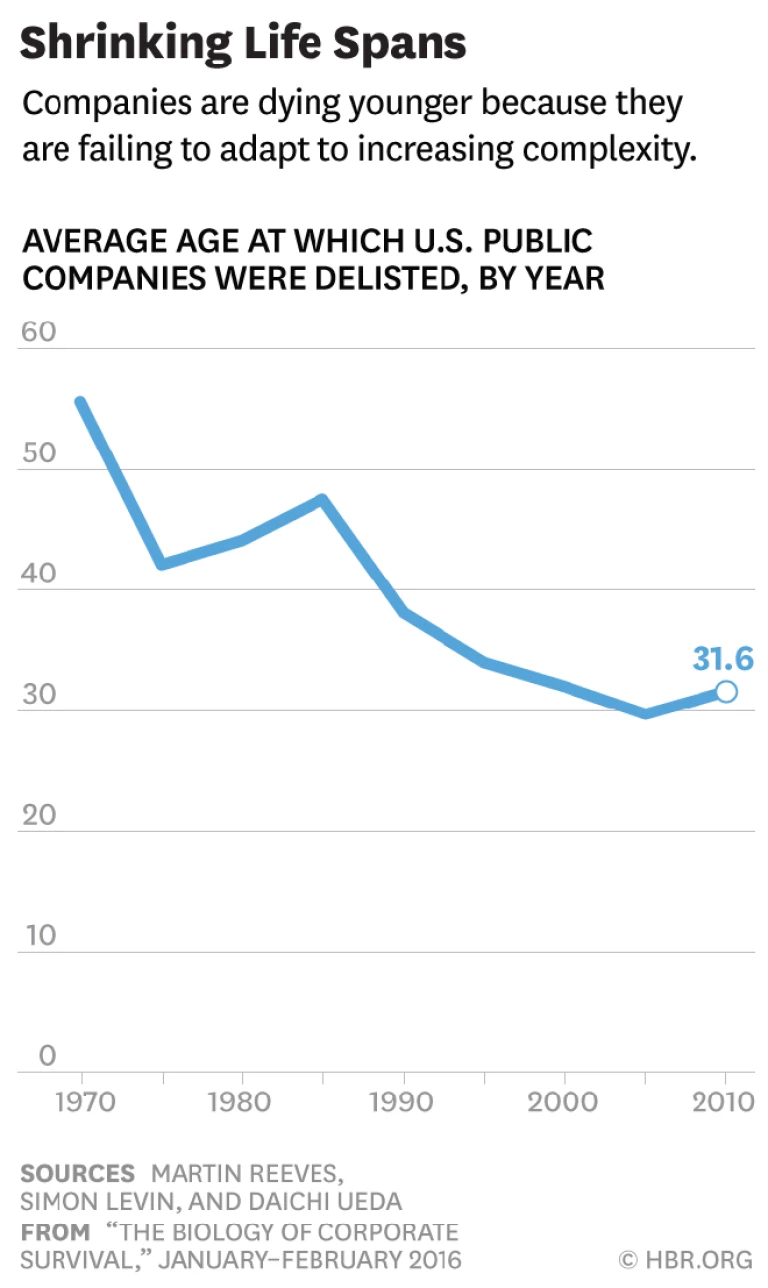 We believe that companies are dying younger because they are failing to adapt to the growing complexity of their environment. Many misread the environment, select the wrong approach to strategy, or fail to support a viable approach with the right behaviors and capabilities.