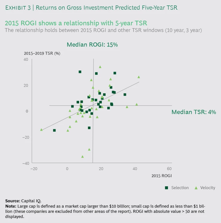 The selection and velocity leaders that rose to the top of the pack are far more likely than underperforming peers to reinvest resources into their business. And they are equally disciplined about returning cash to shareholders. That combination allows them to build sustainable competitive advantage and generate high returns on gross investment (ROGI).