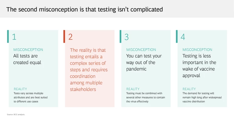 Reality: Testing entails a complex series of steps and requires coordination among multiple stakeholders