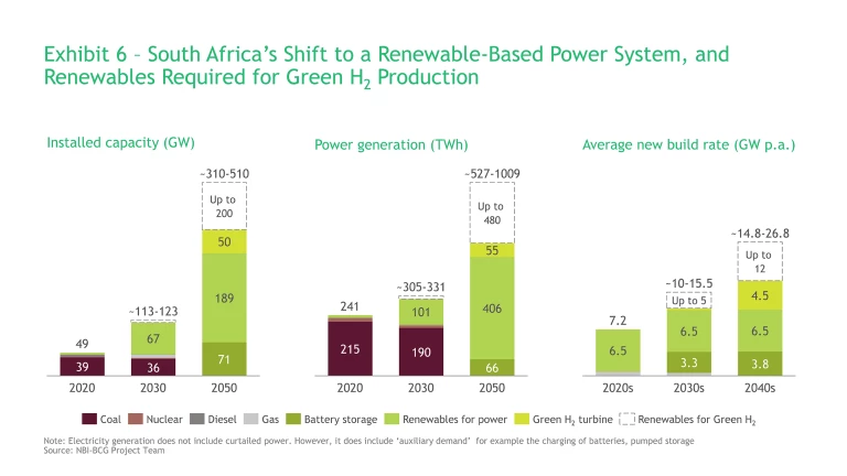 - By deploying renewables at scale, South Africa can solve its current energy crisis and restore its economy’s competitiveness. The deployment will allow the diversification of the economy and can capture new green industries such as green H2, synthetic fuels, and green steel.