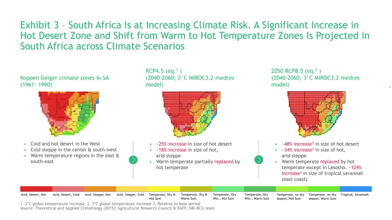 - The physical risk of climate change in South Africa is significant and threatens South Africa’s people and economy.