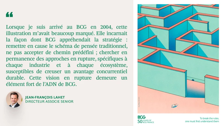 En 2023, pour célèbrer son 50ème anniversaire, BCG France réédite sa première campagne réalisée dans les médias. Cette série d’illustrations intemporelles, qui avait remporté plusieurs prix, a été réalisée par l’artiste Guy Billout.
