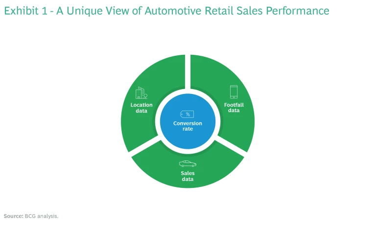 Automotive OEMs and large dealership groups can greatly improve the effectiveness of their marketing spending with better information about the comparative sales performance of independent car dealerships. The method, developed by BCG, uses footfall analytics to compare data from mobile phones with land registry and car registration information to identify sales traffic volumes and sales conversion rates. The information could enable companies to improve decision making in areas from marketing to supply chain spending.