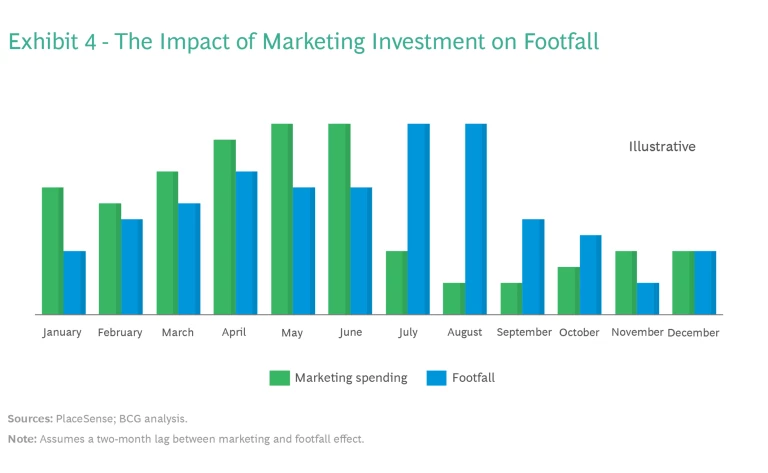 For example, during the second quarter of 2021, a dealer group in Germany increased marketing spending by 50%. Our footfall data analysis showed that the additional investment drove a 57% jump in dealership visits in the months that directly followed. (See Exhibit 4.) Conversely, when the dealer group reduced this spending by 67% in the third quarter, visits dropped 64%.