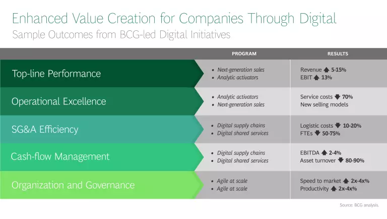 When tapped fully and strategically, digital technologies position portfolio companies in any industry to deliver maximum value to investors by getting more from their traditional value-creation levers—improving top- and bottom-line performance.