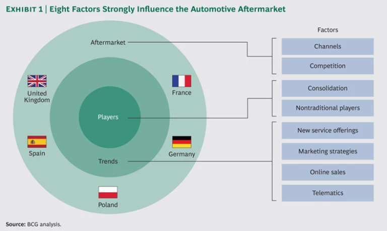 BCG, in collaboration with the European Automobile Manufacturers’ Association (ACEA), has again investigated the dynamics of the automotive aftermarket. We surveyed executives of European automotive manufacturers and conducted extensive interviews with industry experts across the aftermarket spectrum. With the help of their input, we updated our comprehensive automotive-aftermarket model to reflect the developments in the market since we performed our 2012 study. Our analyses covered the aftermarket overall, while maintaining a particular focus on France, Germany, Poland, Spain, and the UK. In this report, we identify the trends that will shape competition in the European aftermarket in the coming years. In addition, we discuss the challenges and opportunities that face the various market players.