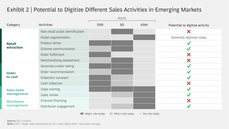 In our view, the answer to all three is a resounding yes. Beyond the digitization of sales roles, companies may look to directly engage with their retailers—allowing retailers to directly place their own orders online, for instance. (See Exhibit 2.)