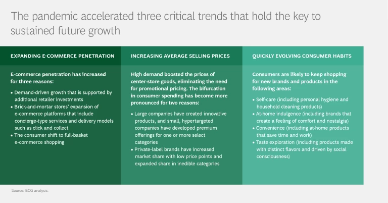 The pandemic bump may be coming to an end, but CPG companies must recognize that certain trends, including the move toward e-commerce and newly solidified consumer habits, are here to stay. As CPG companies look to lap last year’s strong performance, they should consider the following strategies to continue on a trajectory of growth in 2021 and beyond: