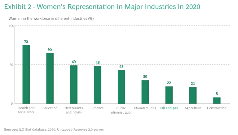 - Underrepresentation of Women in Entry-Level Jobs. While 44% of male and female STEM graduates and young professionals worldwide indicate an interest in working in the oil and gas industry, women occupy only about one-quarter of the industry’s entry-level
