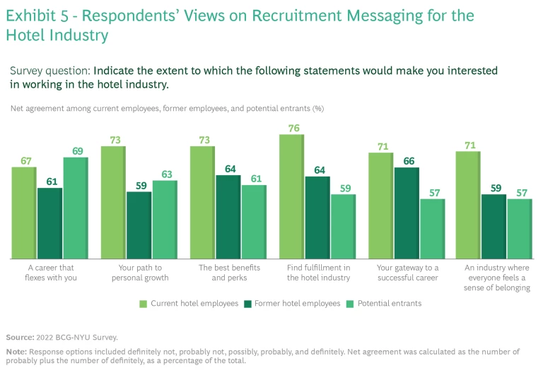 We also tested a range of possible messages about the hotel industry to understand which were most likely to persuade potential entrants in this age group to work in the industry. (See Exhibit 5.)