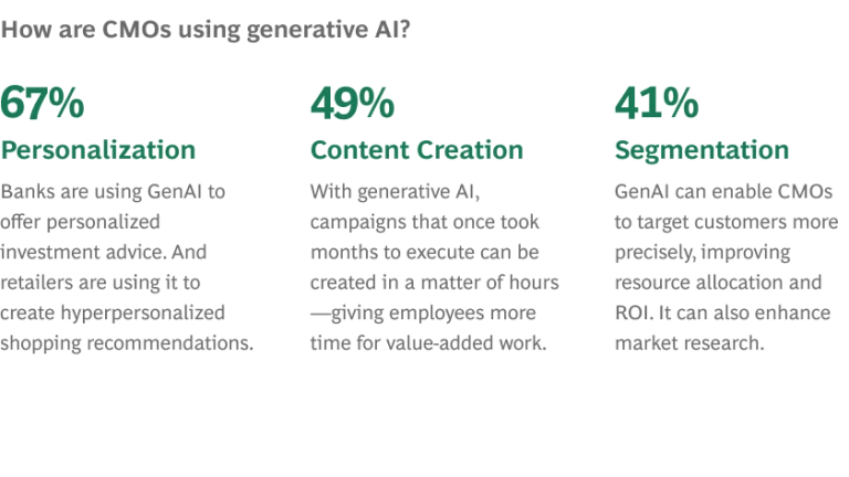 So how can companies successfully implement generative AI? We recommend that CMOs take these key actions.