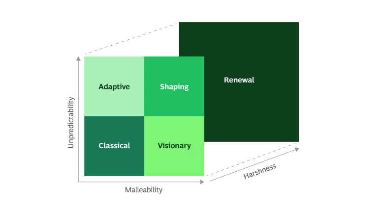 A renewal approach to strategy refreshes the vitality and competitiveness of a firm when it is operating in a harsh environment. When circumstances are so difficult that the current way of doing business cannot be sustained, changing course to preserve and free up resources—and later to redirect them toward growth—is the only way to not merely survive but to eventually thrive again.