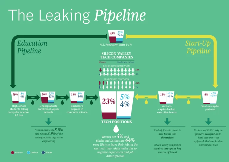 This infographic is based on the BCG article “Closing the Diversity Gap in Silicon Valley.”