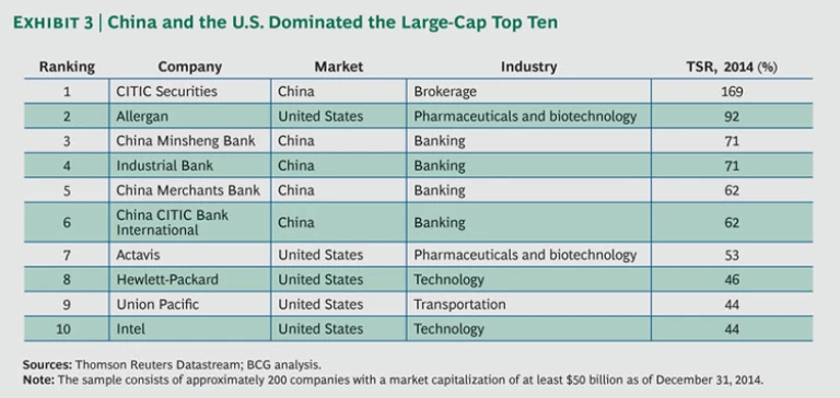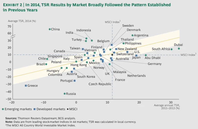 The Boston Consulting Group recently analyzed the 2014 TSR of more than 6,000 companies across 44 markets. There were four key findings: