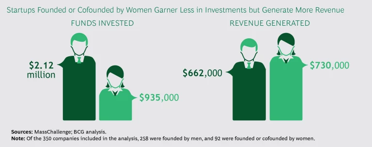 In a review of five years of investment and revenue data, the gender-focused analysis showed a clear funding gap (see the exhibit).