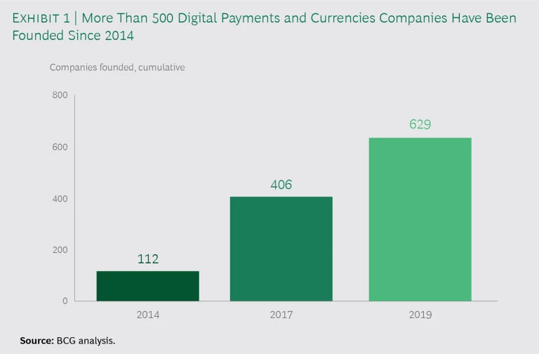 The spike in interest comes as the underlying technologies mature and the potential of digital currencies to ease lingering payments pain points becomes more apparent. Current payments models can be inefficient. Right now, for instance, payments can take days to clear because of complicated national and international gross settlement mechanisms. They can also be exclusionary. Small and midsize businesses often pay significantly higher fees than larger entities because pricing is generally based on volume. Individuals and institutions in emerging markets can also have a harder time accessing international payments networks because of difficulties satisfying traditional requirements, such as having a bank account or a well-documented credit history. Likewise, guest workers often face high costs when transferring money to families in their home countries.