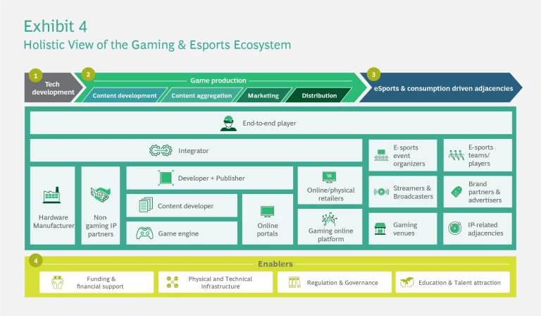 Underpinning the gaming and esports ecosystem are four key enablers: funding, infrastructure, regulation, and education.