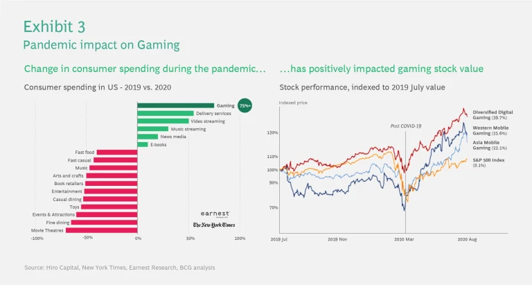 Already a strong performer, the gaming market has significantly outperformed the S&P 500 since the beginning of the COVID-19 pandemic (Exhibit 3). In the US, gamers have increased their spending on gaming by +75% over the course of the pandemic