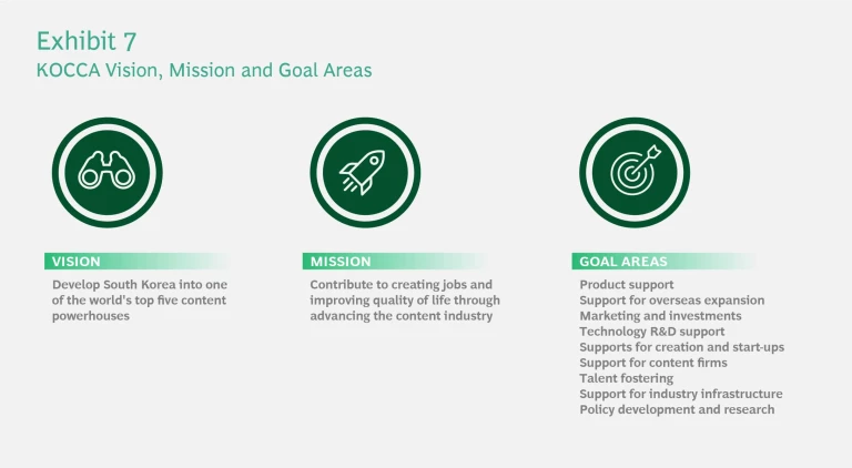 Government agencies including KeSPA and the Korea Creative Content Agency (KOCCA) were early movers in establishing a clear vision for gaming industry, with defined mid- and long-term plans, and a strong focus on esports (Exhibit 7). The country is home to the International esports Federation, and the industry receives strong support from the Ministry of Culture, Sports and Tourism. The societal prevalence of gaming, and 24-hour operations of many PC bangs have led to an unfortunate rise in addiction to the activity. South Korea has responded with gaming rehabilitation centers and a strong anti-addiction lobby, driving regulatory changes like a ban on late-night gaming for young children. - Education and Talent Attraction