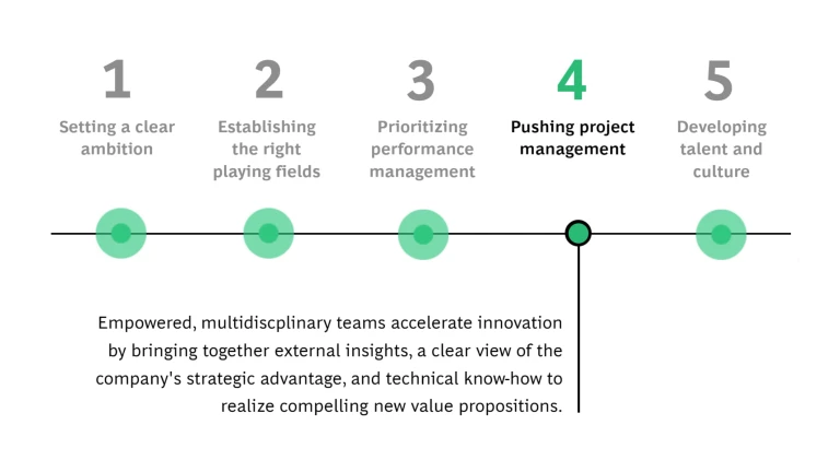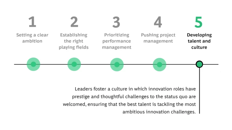 The five key elements of readiness highlighted above can be distilled into two overarching themes—leadership and teaming—each of which is the subject of a chapter of this year’s full Most Innovative Companies report.