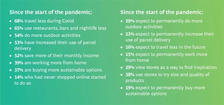 The pandemic has forced consumers to form new habits and patterns that will influence what consumers spend their income on and how they spend it after the pandemic is over. Our research reveals five key insights that can make retailers and consumer goods companies winners in the recovery.