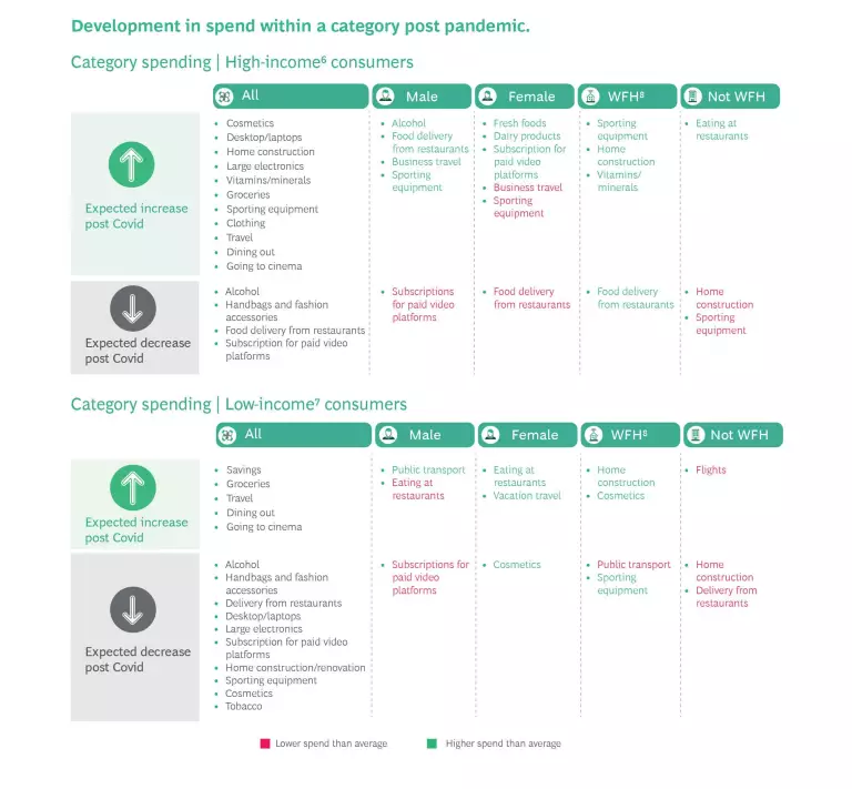 Among high-income consumers increased spending within sporting equipment, home renovation, large electronics, desktops, and laptops are here to stay. Around 30% of the high-income group