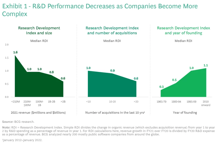 Smaller software companies tend to outperform their larger competitors in returns from R&D investments. How can software companies ensure the scaling of R&D even as they grow?