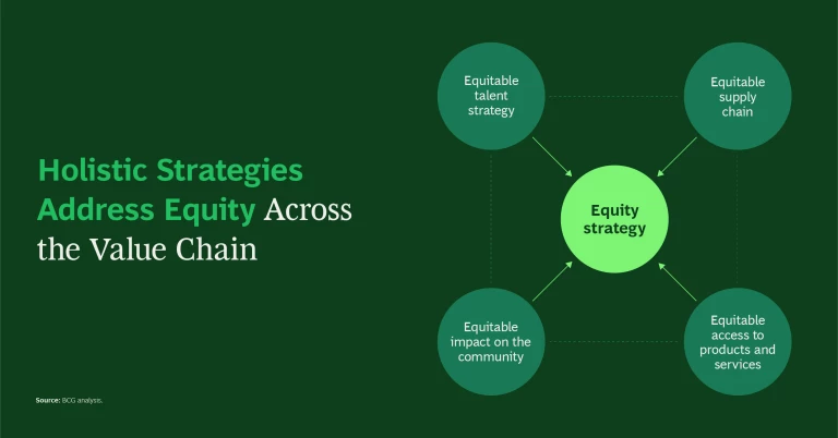 Equity assessments are a relatively new tool that can help organizations measure the effects of their DEI practices—or the gaps therein—and respond appropriately. They can also underpin other organization imperatives: a DEI strategy designed to address consumer and shareholder pressures, for instance, or one designed to attract and retain talent. An assessment of equity and inclusivity in products, services, and operations could also provide a foundation for the societal component of ESG.