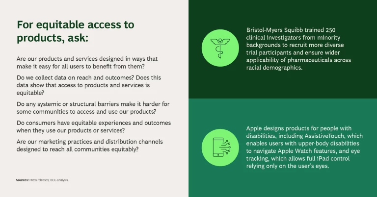 - Consider the design of products and services; that is, whether the design allows for equitable access across communities.