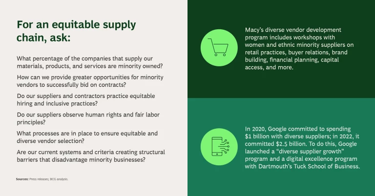- Get grounded. Educate the leadership team on the societal context surrounding equity in their given industry with a mix of demographic data, customer insights, and historical context.