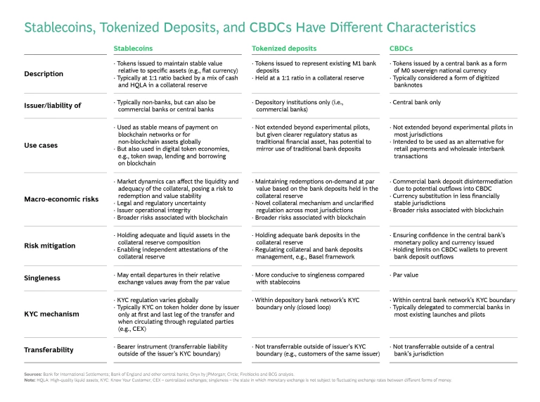 Stablecoins, Tokenized Deposits, and Central Bank Digital Currencies
