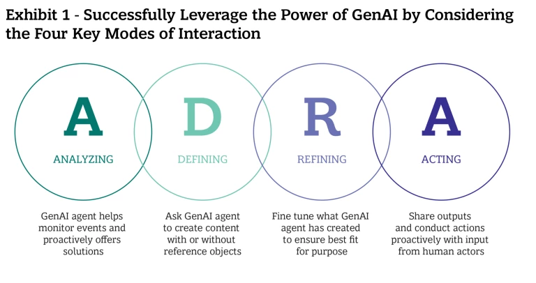 When a technology as powerful as GenAI emerges, leaders have to consider the many possible ways that people will need to interact with it. This is especially true when the tools take the form of a GenAI “agent” that possesses creative and proactive capabilities that can operate in the background on people’s behalf—everything from seeking out relevant facts to add to a discussion to conducting SME interviews on behalf of the team. With this in mind, we have developed a UX design framework to help organizations better integrate GenAI tools into their new and existing workflows. This framework can guide product designers as they think through the most likely ways people will interact with these systems.