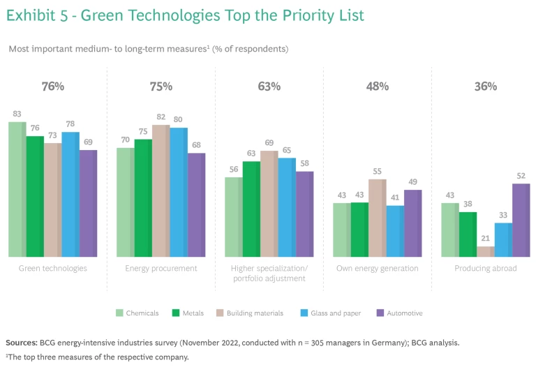 That said, about half of industrial companies were forced to cut or temporarily suspend production, especially in the building-materials sector, which was also affected by supply chain shortages, rising mortgage rates, and an overall reduction in construction activity. A third of the companies surveyed by BCG in Germany in late 2022 had started to source raw materials and prefinished goods abroad, and 18% had shifted production to countries with better cost structures.