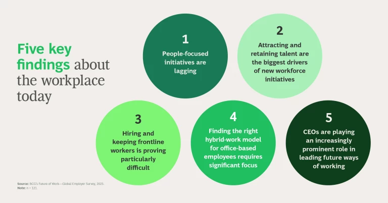 CEOs and other business leaders have not gotten as far as they would like in helping their people work in new and more effective ways. But leaders who can get past the obstacles and improve the work environment can hire, retain, and upskill workers more effectively—and gain a significant talent advantage.