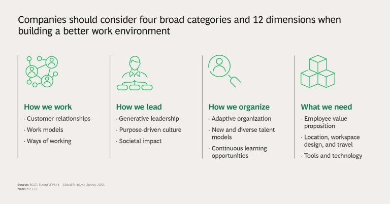 Given the tremendous disruption to traditional ways of working that arrived with the pandemic and the speed with which generative AI is transforming the day-to-day reality of work, leaders must urgently consider how to make work function more effectively for their organization and their people. Taking steps to implement the right work-related initiatives can help address the obstacles that may be blocking progress.