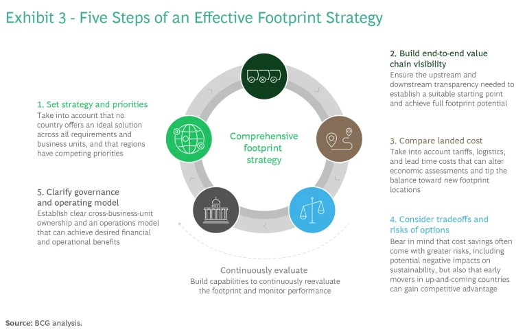 Building a manufacturing and sourcing footprint that offers sustained competitive advantage requires a comprehensive approach with five key actions. (See Exhibit 3.)