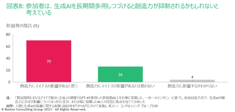 生成AIを適切な方法で適切な業務に使用したとしても、創造性の面でリスクがあることが、今回の研究で示唆されている。