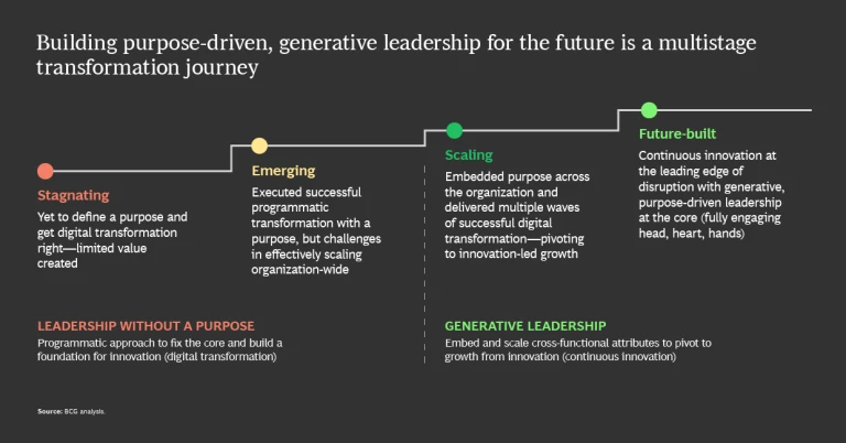 Building generative leadership is a process. Building for the future through generative leadership is a process that takes continued effort over time. Yet it pays financial and nonfinancial benefits as companies move up in terms of their maturity.