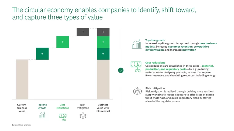 CIRCelligence by BCG provides a comprehensive holistic approach that enables businesses to integrate circularity into their core business strategy in a way that delivers economic benefits and also maximizes total societal value.