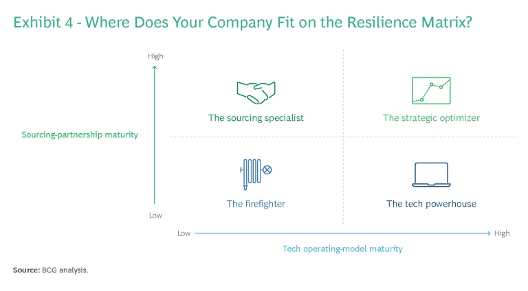 This classification has value for any business—not only survey participants. By assessing themselves on the maturity criteria, companies can see where they fit on the matrix and gain insight on the actions they can take to improve resilience.