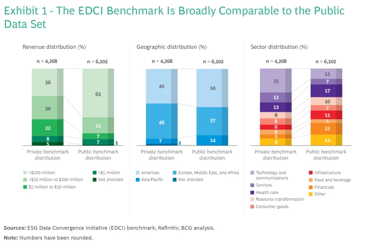 The EDCI has made strong progress in this regard. With more than 62,000 data points collected from around 4,300 PE-backed companies, we now have a broad understanding of how the private markets currently compare with the public markets across a variety of topics. (See the appendix, “About Our Research.”)