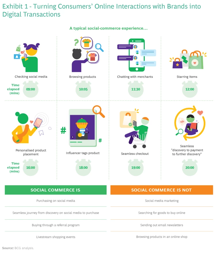 - For consumers, social commerce opens up more seamless, convenient, and novel shopping formats and experiences.