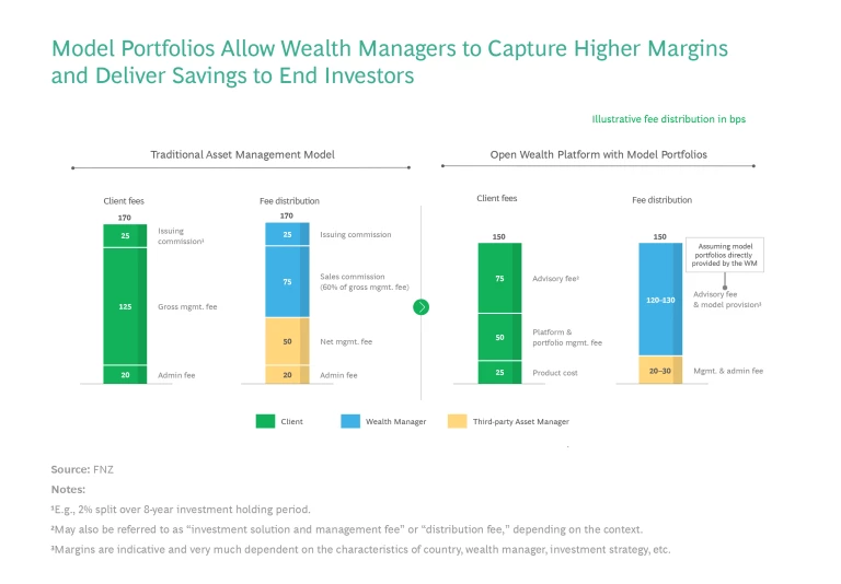 - Wealth managers can provide model portfolios directly rather than rely on strategies provided by asset managers, thus keeping a larger share of client fees, even after those paid to the platform partner.