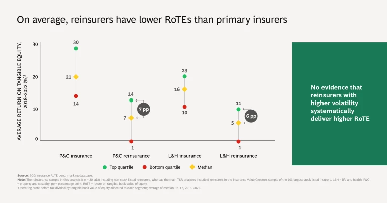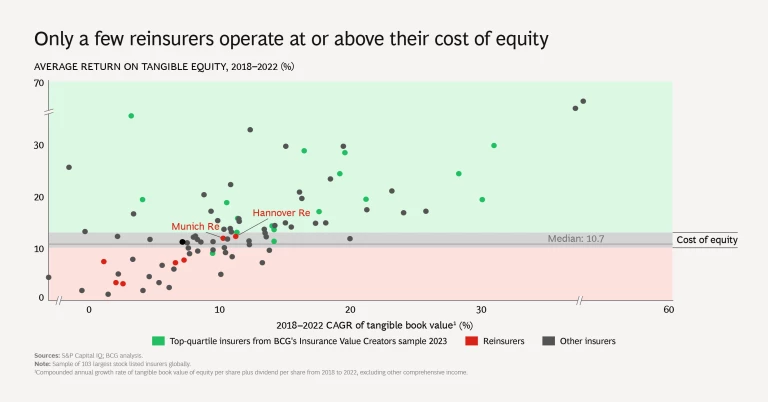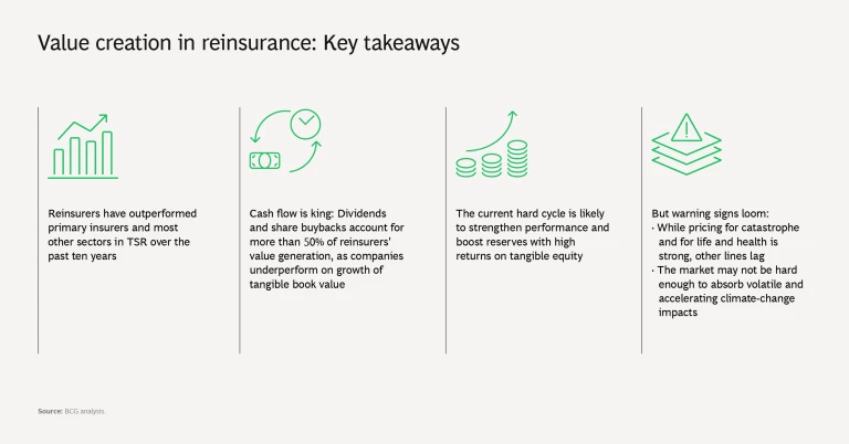 Going forward, operating performance rather than cash flow is likely to drive reinsurers’ shareholder returns—especially growth in TBV, which is largely a function of return on tangible equity (RoTE). The good news is that market trends over the next two to three years appear positive for reinsurers that have the market access, available capital, and product breadth to play in the most attractive reinsurance lines.