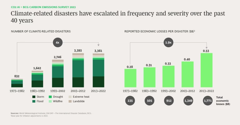 The climate crisis presents an urgent call to action. As climate-related disasters intensify in frequency and severity, so does the economic impact on communities and businesses. Reported economic losses per climate event in the decade from 2013 through 2022 were 33% higher than in the prior ten years.