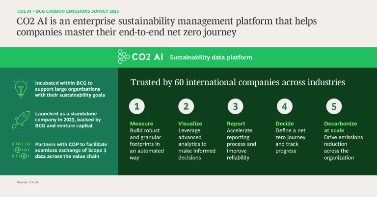 This research was a collaboration between BCG and CO2 AI, an enterprise sustainability management platform that helps companies master their end-to-end net zero journey.