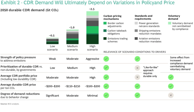 Our analysis shows that governments have five primary direct and indirect ways to boost demand for durable CDR, which vary significantly in terms of the amount of demand created.